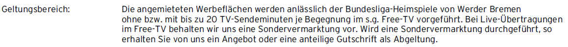 Bandenwerbung: Als Beispiel für Bandenwerbung habe ich leider auch nur von Werder Bremen ein aktuelles Beispiel im Internet gefunden. |