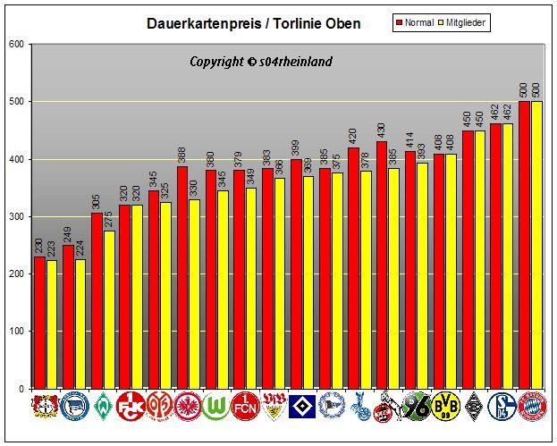 Die Dauerkartenpreise im Vergleich der Bundesligisten sieht folgendermaßen aus:
