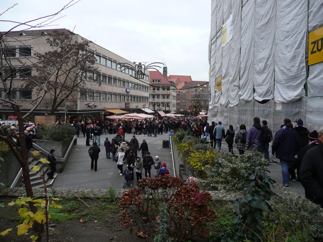 Am nächsten Morgen machten wir uns, nach einem guten Frühstück in der "Sonne", auf den Weg nach Nürnberg. Da wir schon gegen Mittag dort ankamen, hatten wir noch einige Zeit die Stadt zu erkunden. Viele zog es auf den Christkindlmarkt, den ich mir etwas größer vorgestellt habe. Obwohl es brechend voll war, fanden wir ein gemütliches Plätzchen zum Glühwein schlürfen und Wurst essen. |