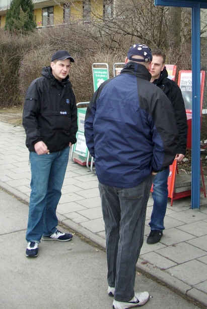 Ab nach Schwabing ins Wirtshaus zur Brezn, was typisch bayrisches, dann mit der U-Bahn ins Stadion, wo mit Steffen-Jo Müller ein weiteres Mitglied unseres Fan-Clubs zu uns stieß.