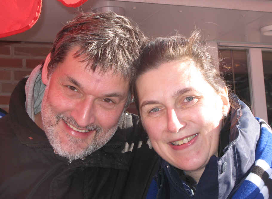 Mal wieder gab es Probleme mit der Anreise per S-Bahn. Deshalb schafften es Gladdie und Lala erst kurz vor Abmarsch ins Stadion zum Treffpunkt zu gelangen. |