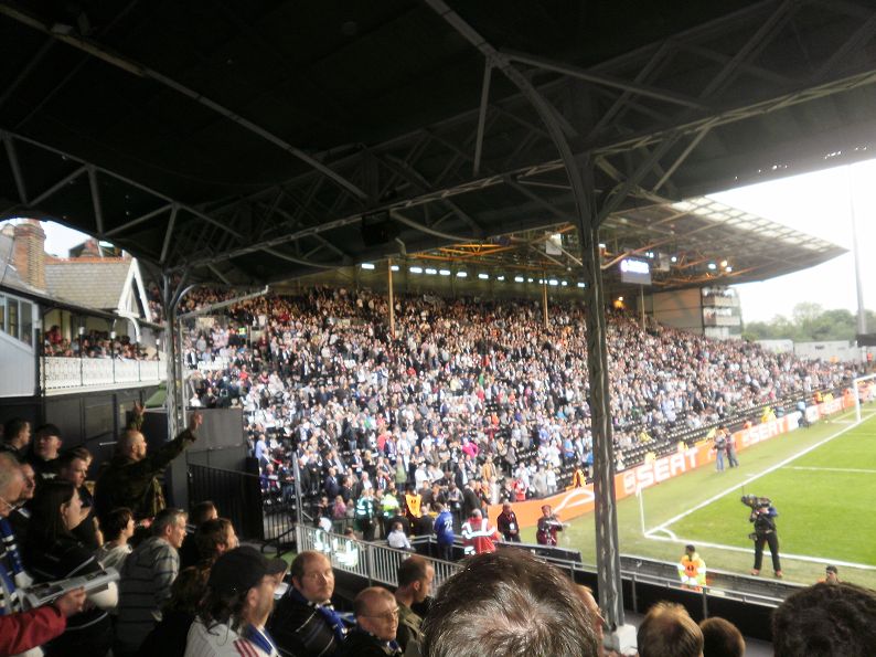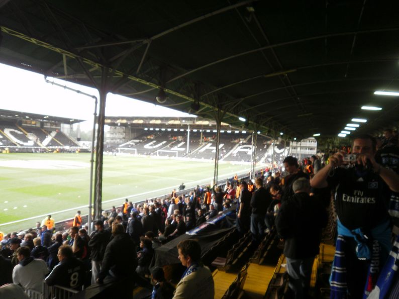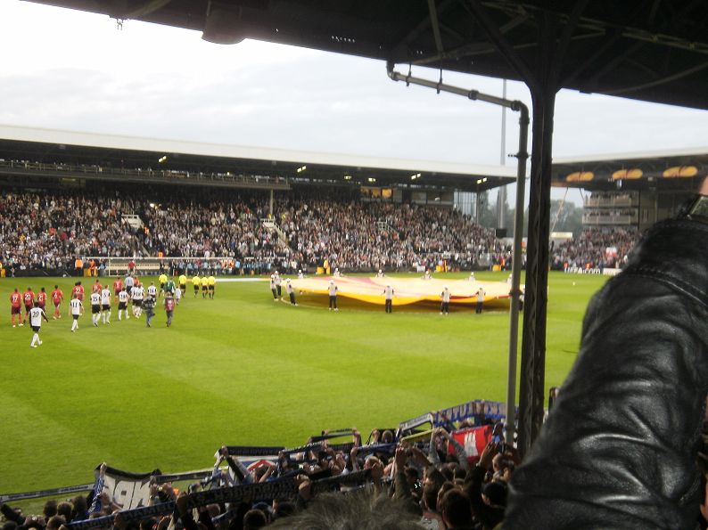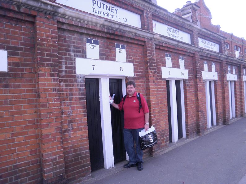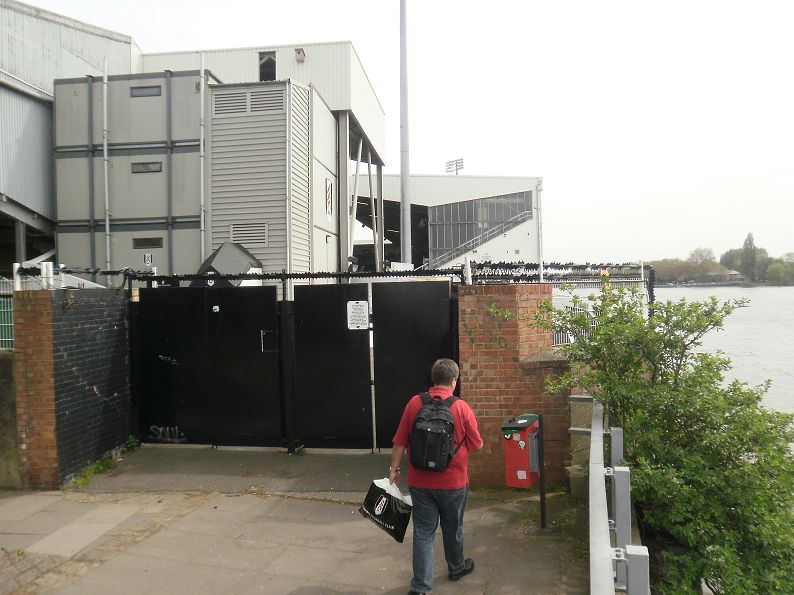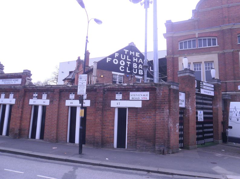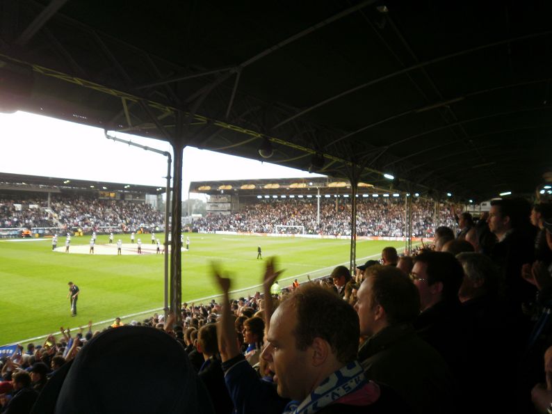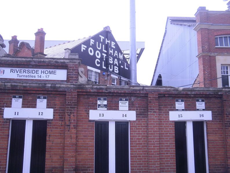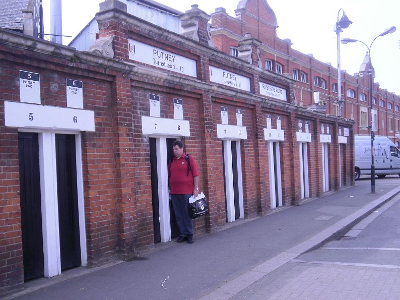 Dann hatten wir genug gesehen und zogen die Fulham Road weiter runter Richtung Craven Cottage. Eine halbe Stunde Fußweg durch eine Stadt die sich Ihren Charme durch viele ältere Gebäude , alte Taxis und Busse erhalten hat. Nach einem kurzen Besuch im Fan-Shop des Fulham FC lag dann endlich das Stadion vor unseren Füssen. Direkt an der Themse, mit Eingängen, die an Zeiten erinnerten als es weniger zu Essen gab. |
