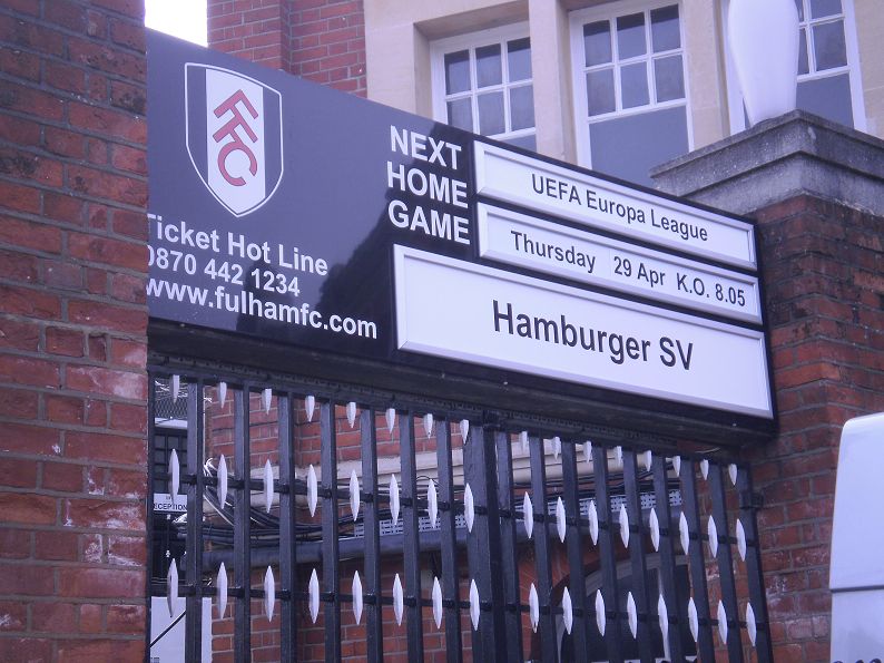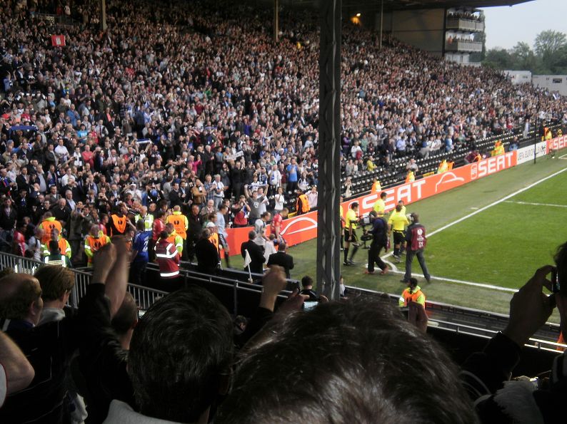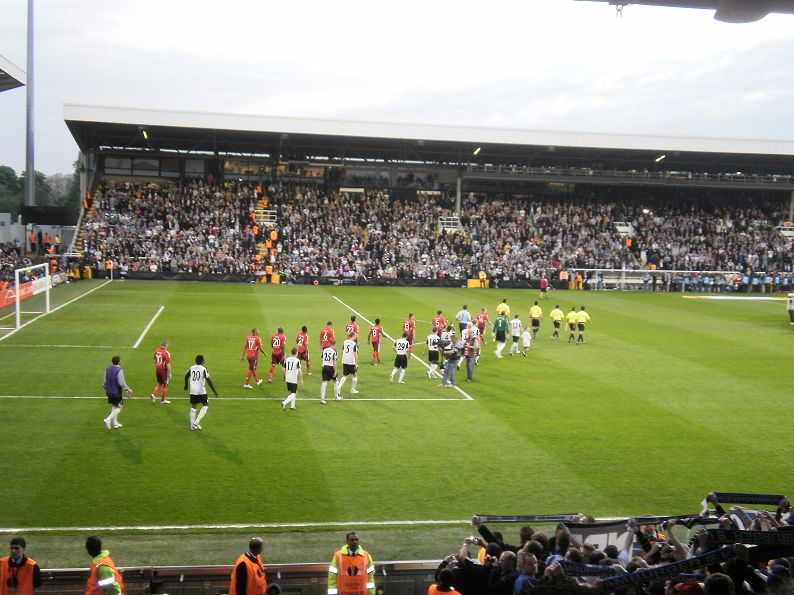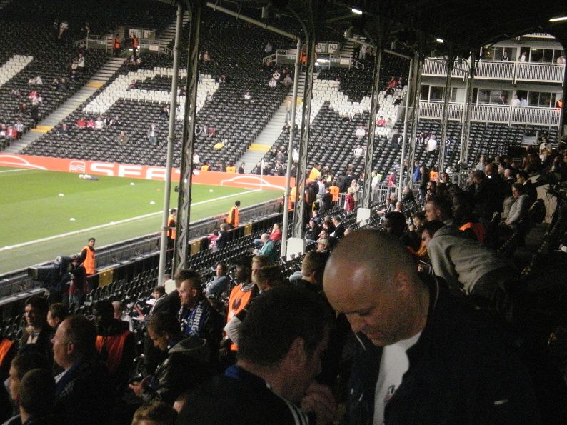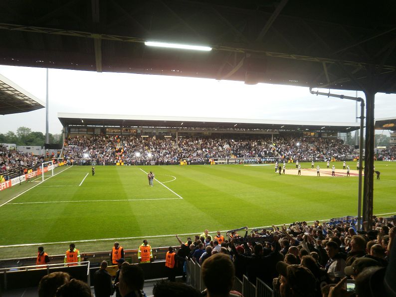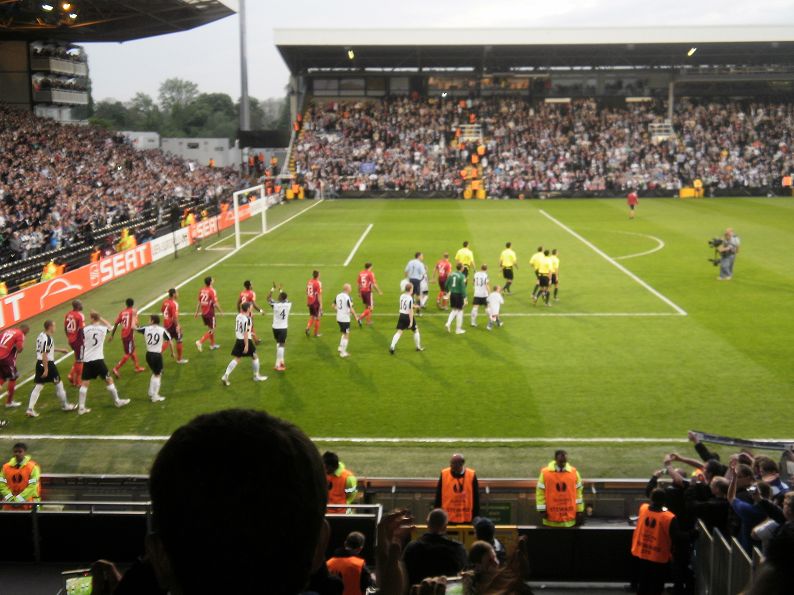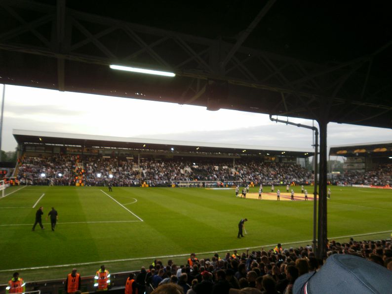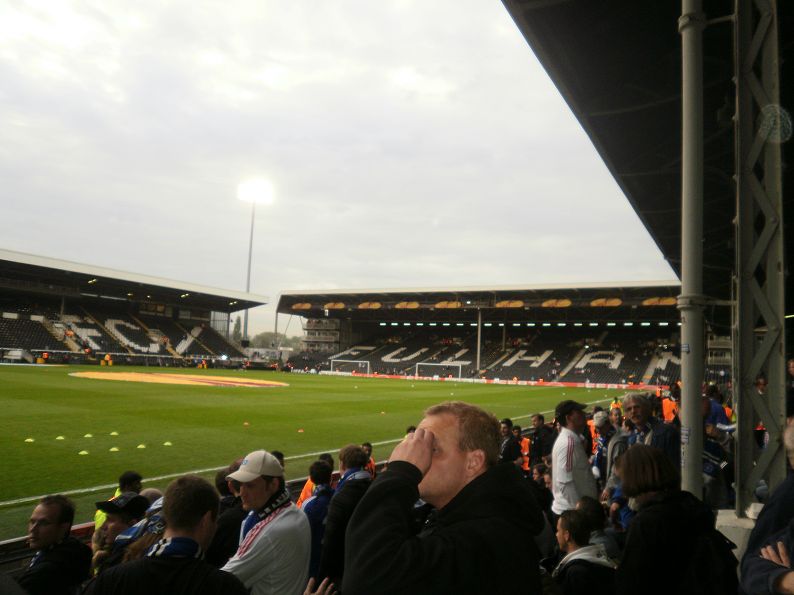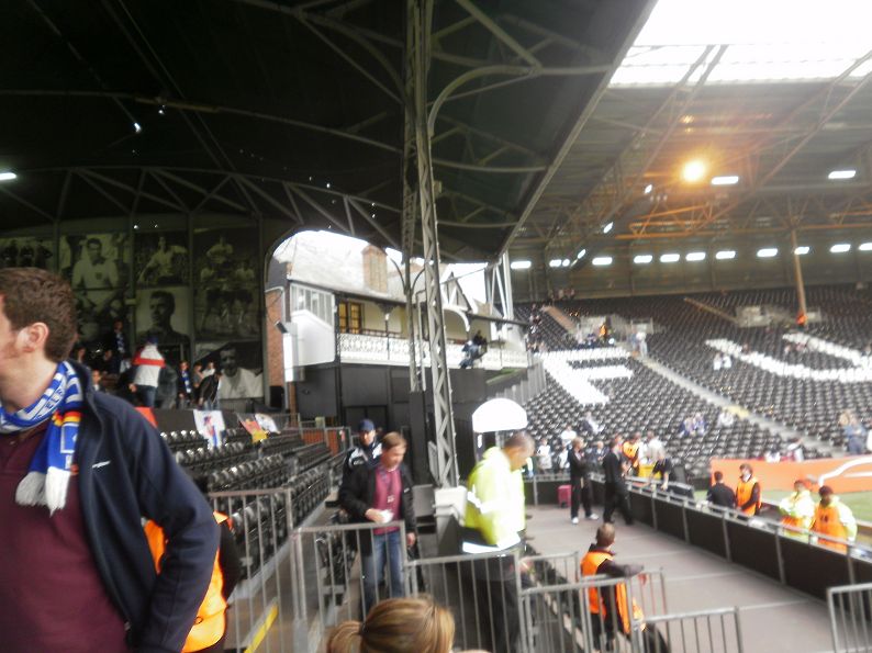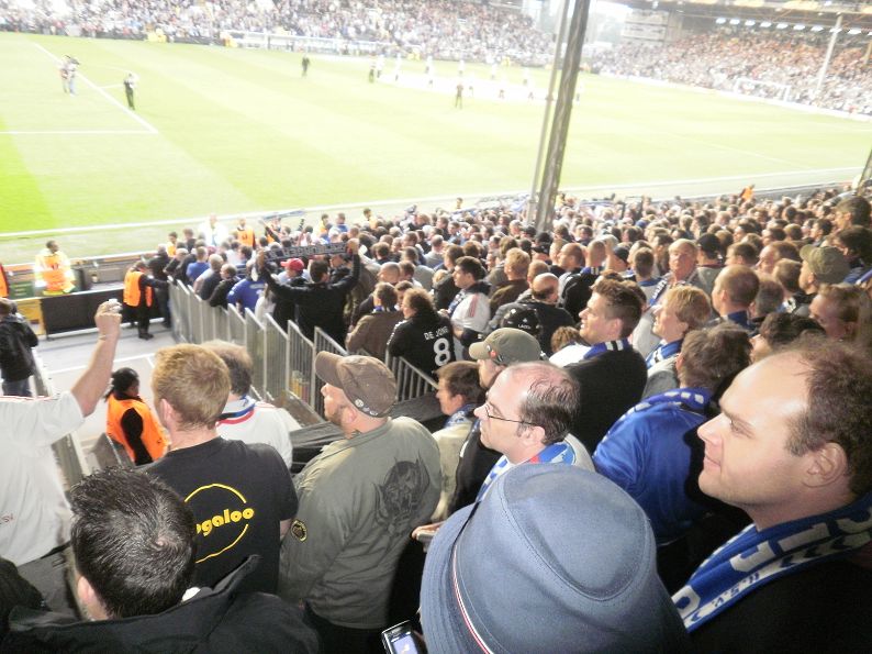 Dann hatten wir genug gesehen und zogen die Fulham Road weiter runter Richtung Craven Cottage. Eine halbe Stunde Fußweg durch eine Stadt die sich Ihren Charme durch viele ältere Gebäude , alte Taxis und Busse erhalten hat. Nach einem kurzen Besuch im Fan-Shop des Fulham FC lag dann endlich das Stadion vor unseren Füssen. Direkt an der Themse, mit Eingängen, die an Zeiten erinnerten als es weniger zu Essen gab. |