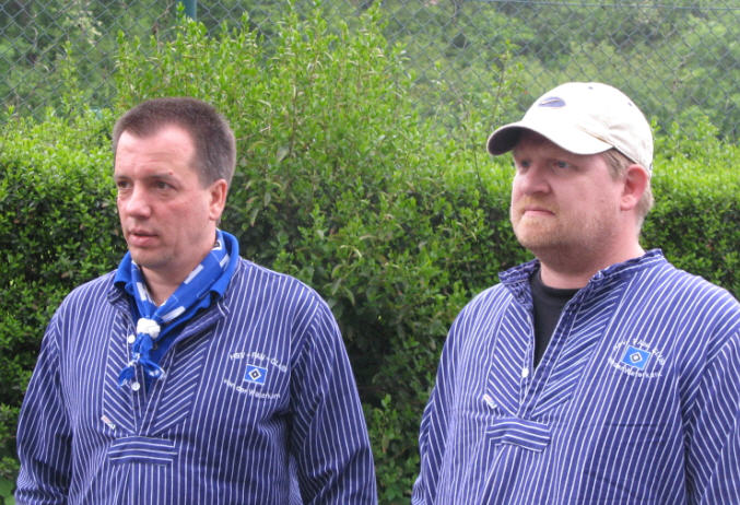 Wir hatten uns zusammengefunden, um bei leckeren Getränken und ebenso leckerem Gerilltem dem letzten Bundesligaspiel der Saison 2009 / 2010 Werder Bremen - HSV gemeinsam auf einer Großbildleinwand zu folgen. Unsere letzte Hoffnung unseren HSV in der nächsten Saison doch wieder in der Europa League sehen zu können wurde leider nicht erfüllt. Weder verlor unser direkter Konkurrent um Platz 6 - der VfB Stuttgart - in Hoffenheim noch konnten die Rothosen an der Weser gewinnen. Beide Spiele gingen 1:1 aus. |