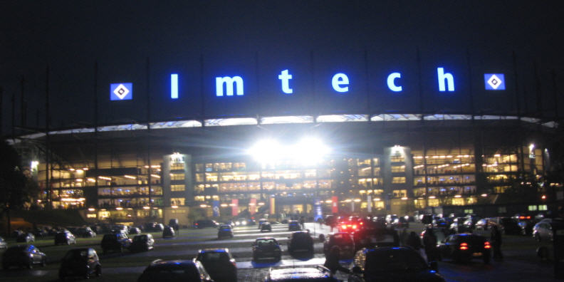 Die Imtech-Arena seit ein paar Wochen jetzt auch mit beleuchtetem Schriftzug. | |