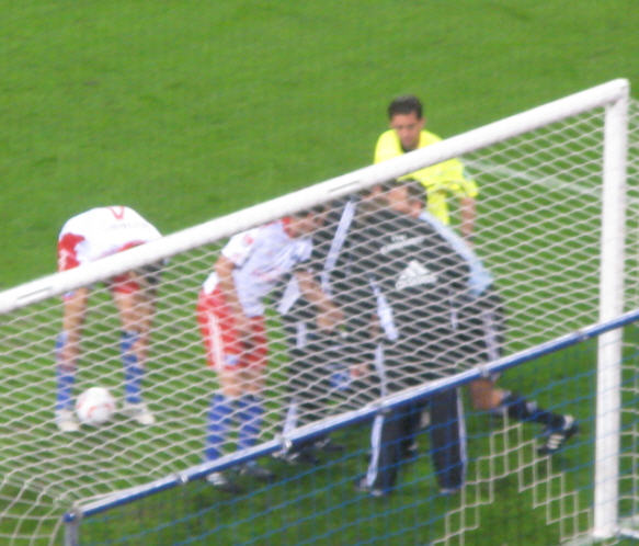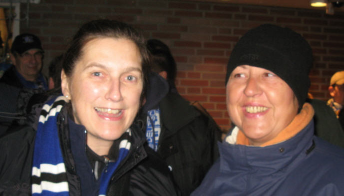 Regi in der Halbzeit etwas vermummt. Es war bei dem regnerischen Wetter auch reichlich ungemütlich. Aber dennoch wieder ausverkauftes Haus an der Sylvesterallee. |