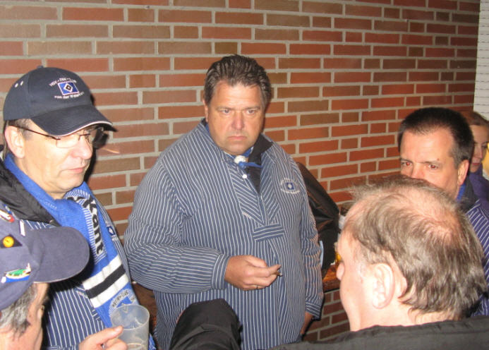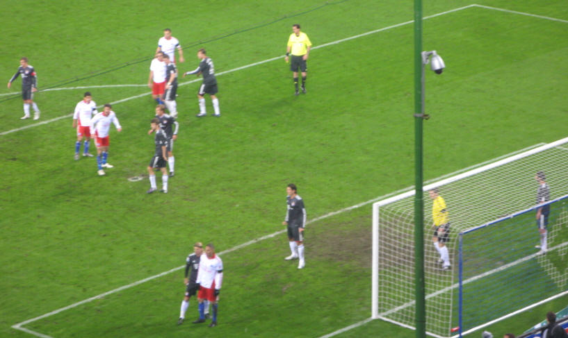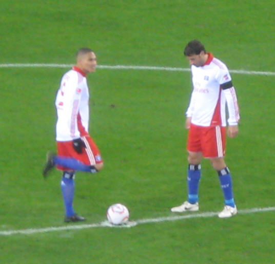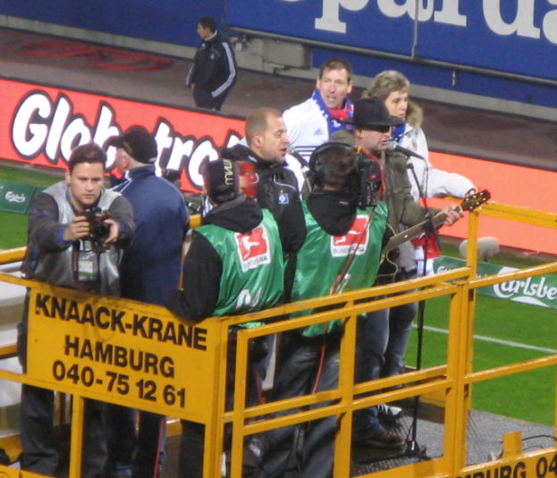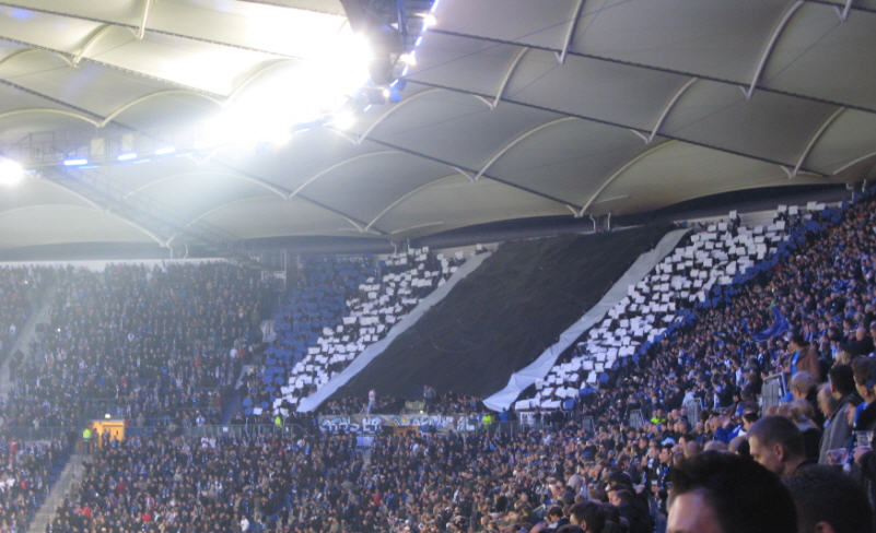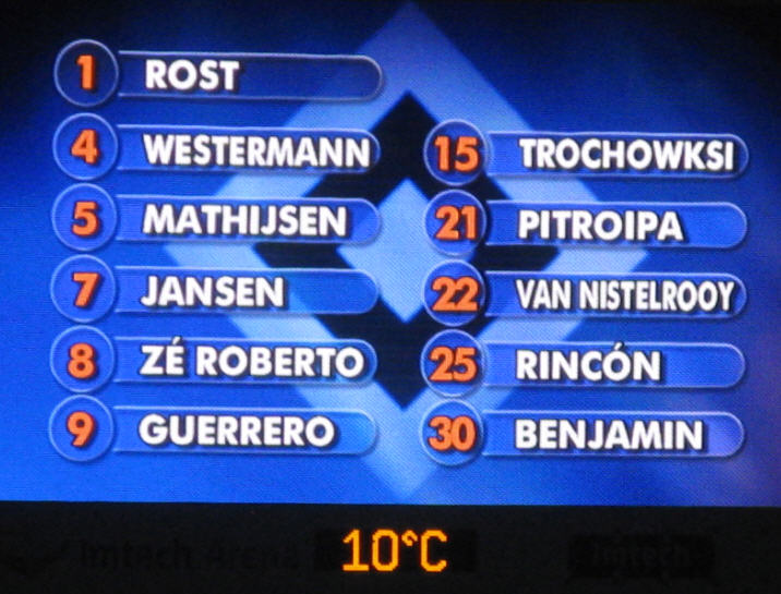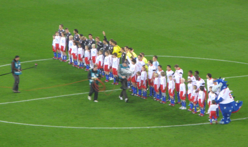 es geht los, das ewige Duell Nord gegen Süd... Die Rothosen heute mit Trauerflor, da die Ehrenbürgerin Hamburgs und Frau des Ex Bundeskanzlers Loki Schmidt vor zwei Tagen verstorben war. |