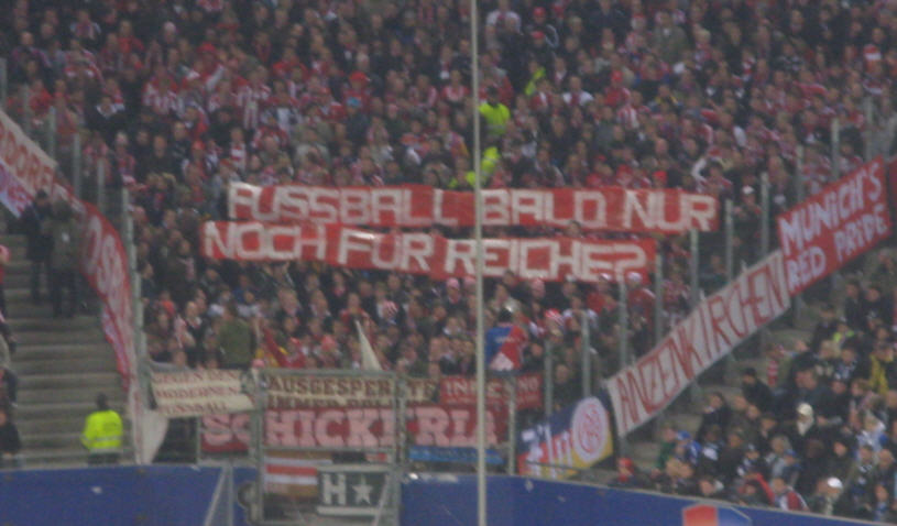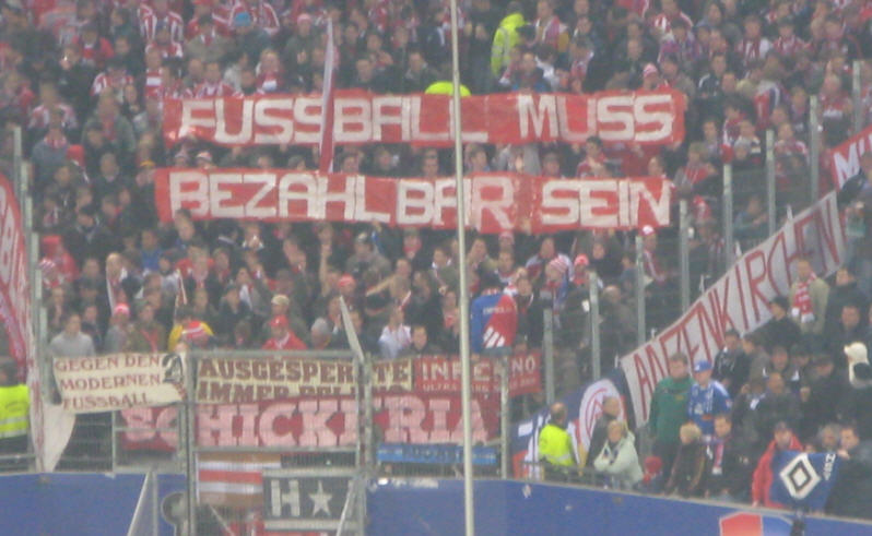 Fankultur im Allgemeinen äußerten... ...hatten die Gästefans eher monetäre Anliegen. Ist ja auch klar, bei jedem Auswärtsspiel der Bayern müssen sie den Toppzuschlag des Gastgebers bezahlen :-( |