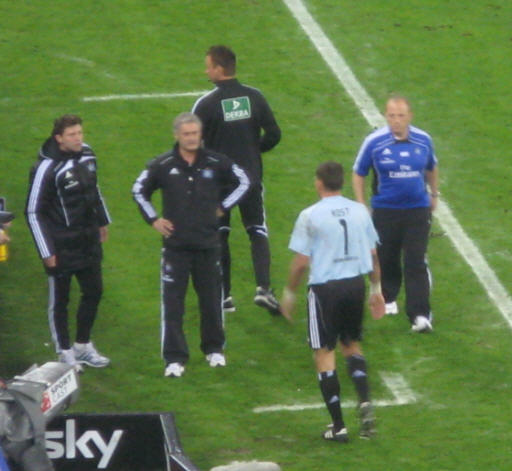 Schrecksekunde für den HSV - Torhüter Rost hat sich im Zusammenprall mit Bastian Schweinsteiger schwer verletzt und musste kurz danach ausgewechselt werden. |