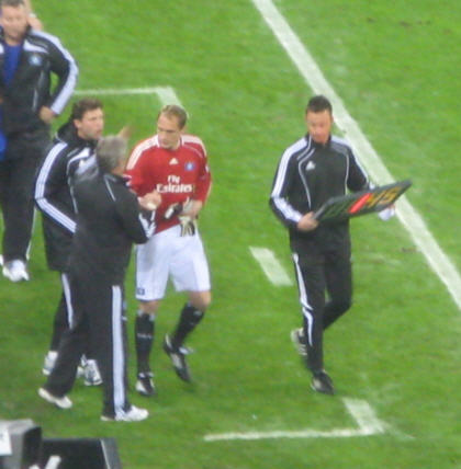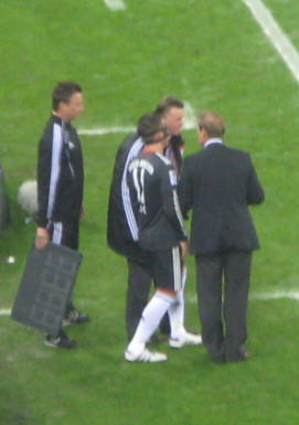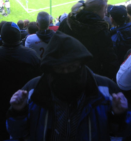 Olic - der Mann mit der Maske - wird eingewechseltund von den HSV-Fans freundlich begrüßt. |