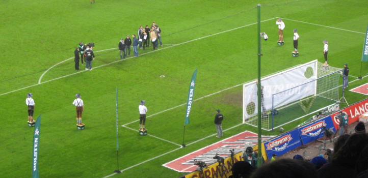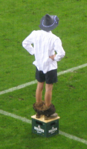 In der Halbzeitpause die Torwandshow. Diesmal etwas abgewandelt. Für jeden Treffer musste eine Lederhose fallen. |
