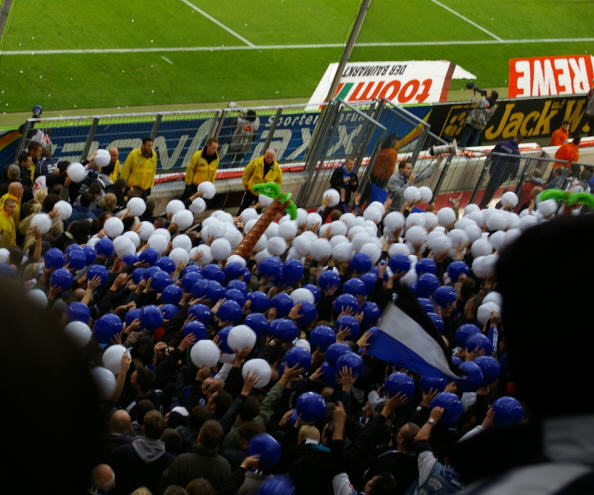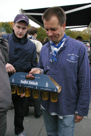 Danach direkt mit der Straßenbahn zum Stadion. Vor dem Stadion wurden die letzten Frühstücksreste verspeist, danach ging es dann Richtung Stadion. Zigge spendierte erstmal eine Rutsche Gaffel Kölsch dann ging es ins Stadion. |