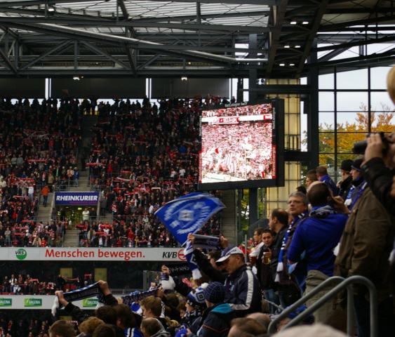 Das Kölner Stadion war mit 50.000 Zuschauern restlos ausverkauft. 5.000 HSVer unterstützten Ihr Team. Es macht mich immer wieder Stolz, wenn man sieht wie viele HSV-Fans aus dem gesamten Bundesgebiet unseren HSV bei den Auswärtsspielen begleiten. |