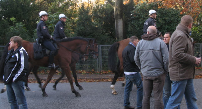 Und auch die neue Reiterstaffel - ein Prestigeobjekt unseres Senats - im Einsatz. |