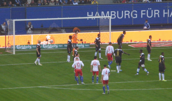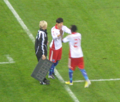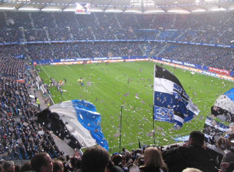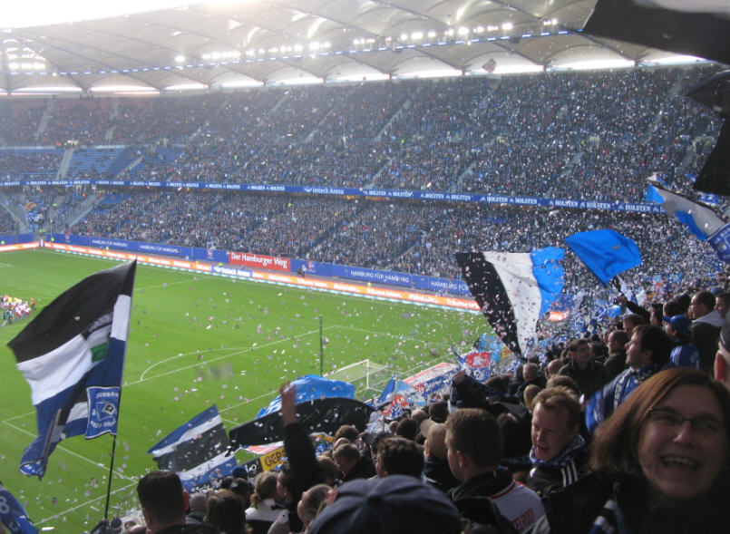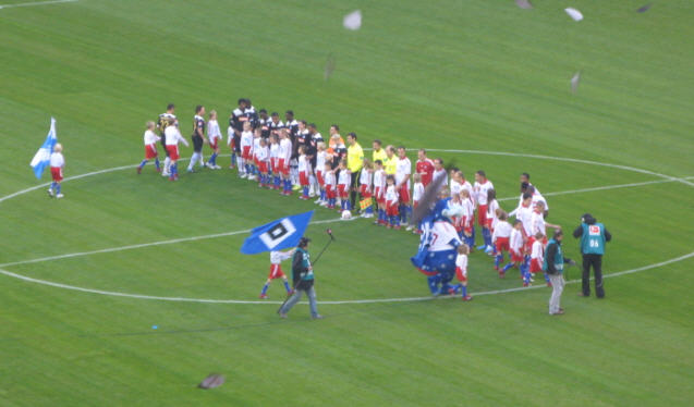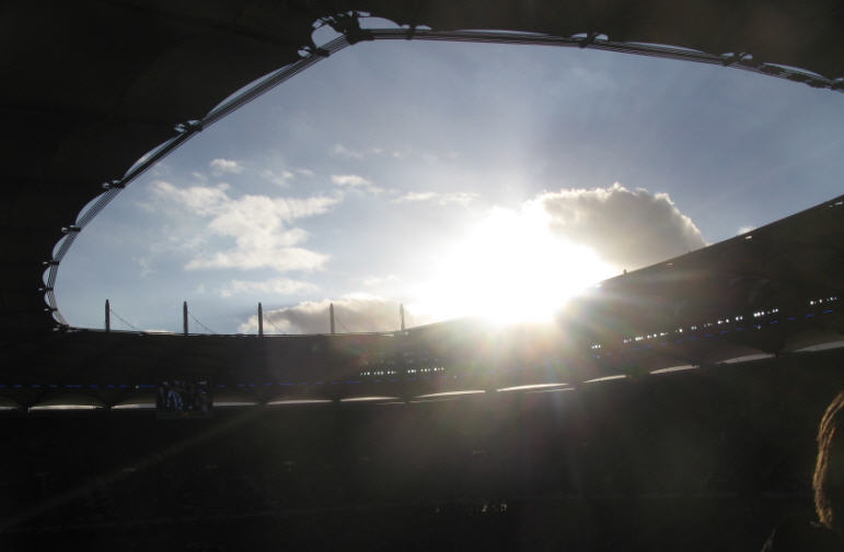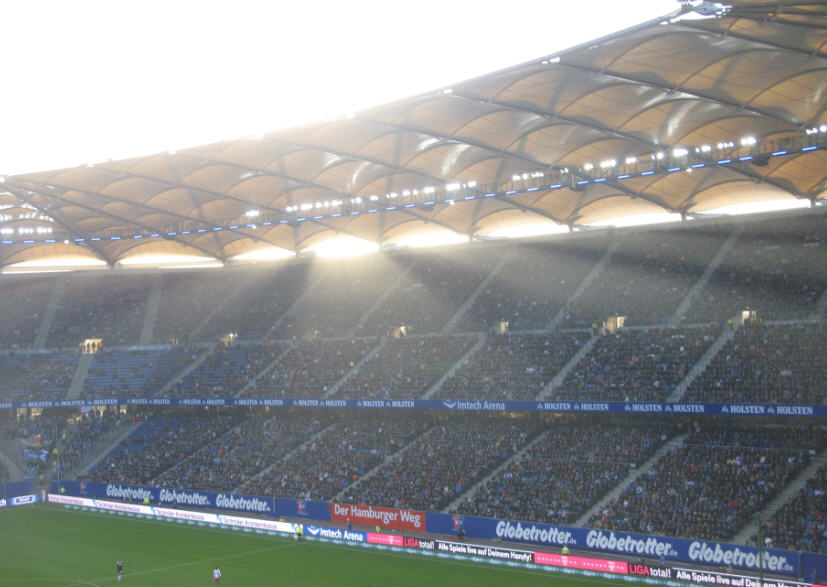 Herrliches sonniges Fußballwetter in Hamburg. Vor dem Spiel waren sogar die Wolken über der Imtech-Arena schwarz weiß blau. | |