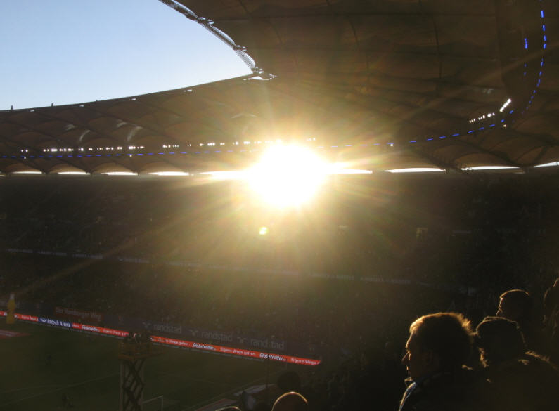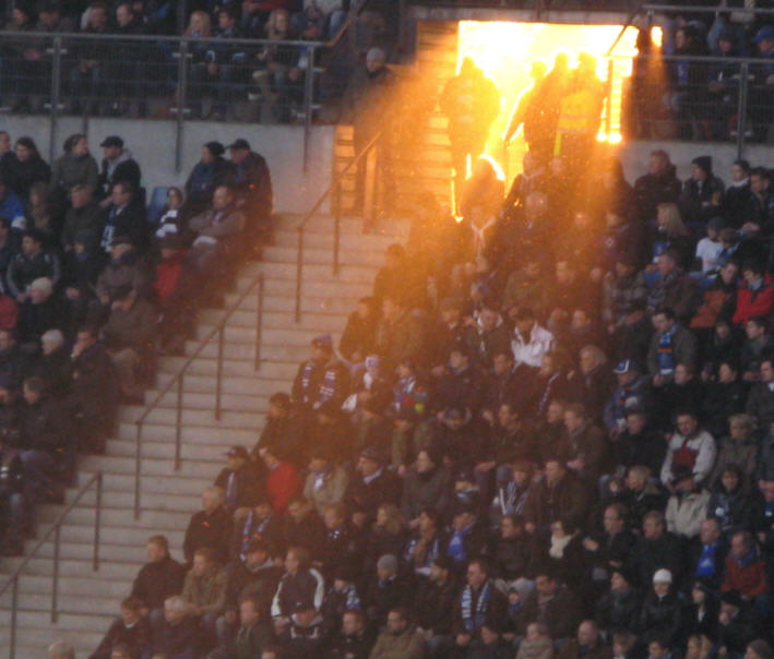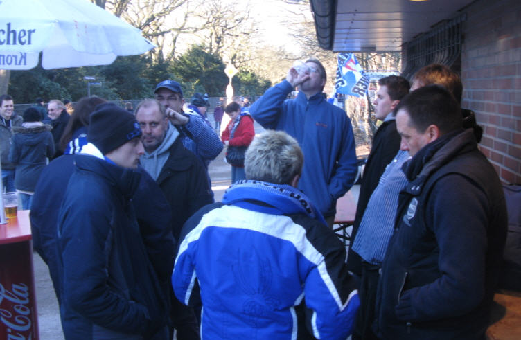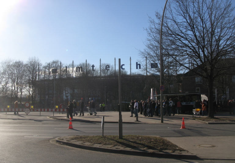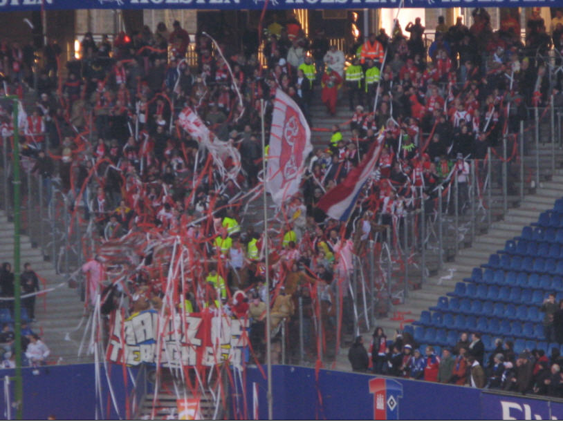 "So ein Tag, so schön wie heute..!" konnten aber leider nur die sehr spärlich vertretenen Anhänger der Mainzer singen. Einige wenige Hundert hatten den Weg in den Volkspark am Fassnachtswochenende von Mainz nach Hamburg geschafft. | |