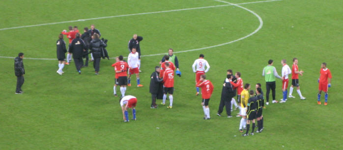 Lief doch eigentlich alles nach Plan. Der Schiedsrichter gibt ein Tor, welches eigentlich keines war... ...na ja, man muss auch mal Glück haben. |