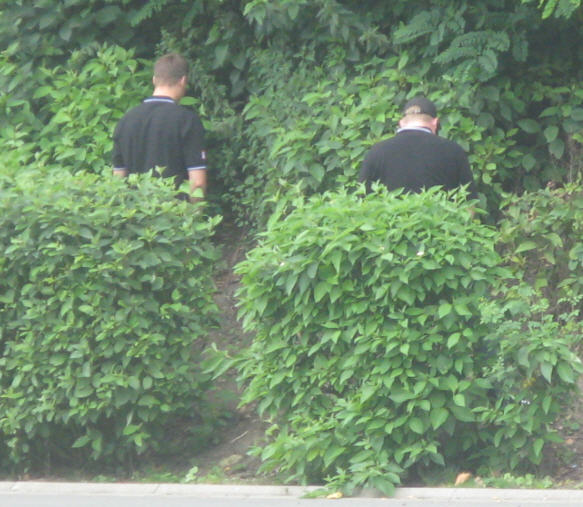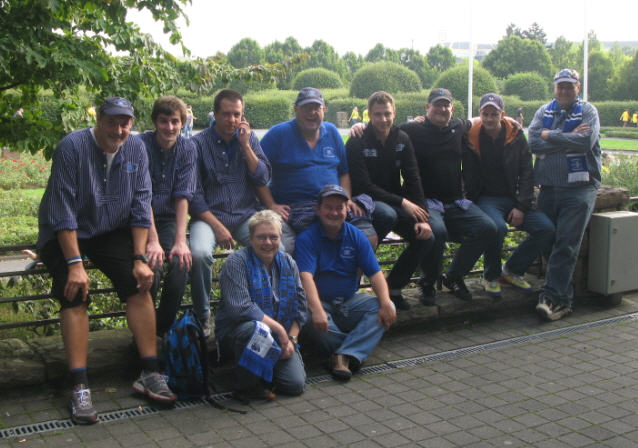 Vom Parkplatz ging es erst einmal Richtung Rosengarten, um Zigge und Regi zu treffen. Unsere Bielefelder Deern und unsere Berliner Jung gehören ja zu unseren treuesten Auswärtsfahrern. | |