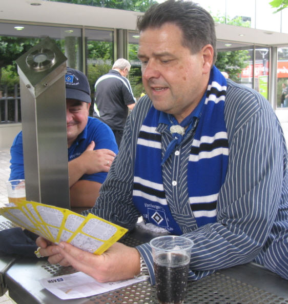 Zwei Erkenntnisse bleiben nach diesem Spiel. Dortmund spielt in einer anderen Liga - jedenfalls kann sich die neu formierte und stark verjüngte HSV-Mannschaft gegen die teilweise sensationell kombinierende und eingespielte Dortmunder Truppe derzeit nicht auf Augenhöhe messen. Die zweite Erkenntnis nach Originalton Gladdie: "Wir können noch aus eigener Kraft Deuter Meister werden!" Was sonst noch wichtig war: Unsere Regi hat sich mit der Teilnahme an der heutigen Auswärtsfahrt auch unseren Club der 25 Auswärtsfahrten erreicht.