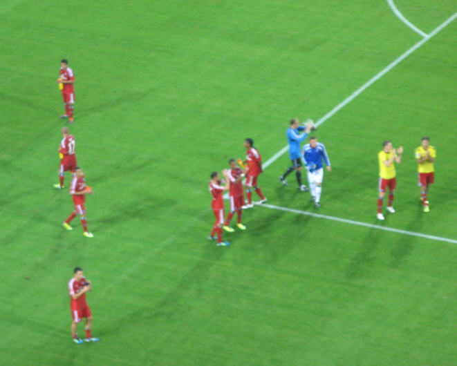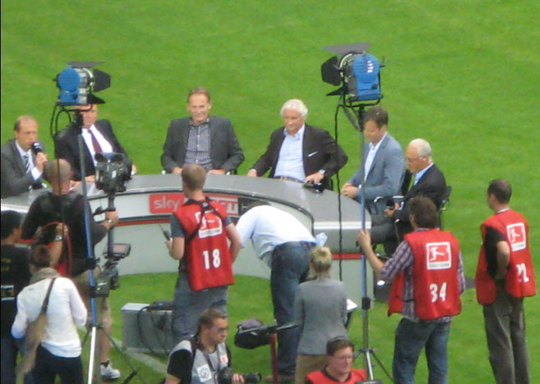 Das Eröffnungsspiel der 49.Bundewsligasaison wurde in 199 Länder der Welt (206 gibt es derzeit...) live übertragen. Dementsprechend war das Medieninteresse sehr groß. | |