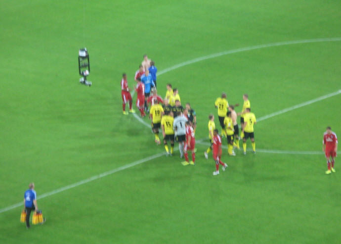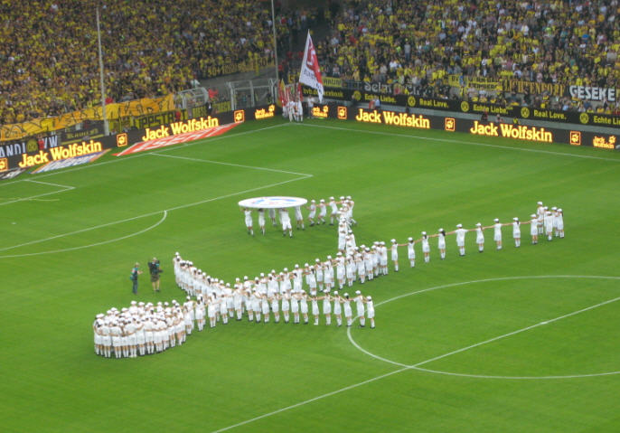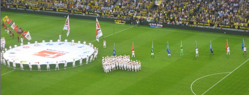 Und hier noch ein paar Impression der Stadionshow. Die Dortmunder Fan hatten da einen sehr guten Kommentar in der Halbzeit: "Die DFL liebt die Show - Die Fans lieben den Fußball!" | |