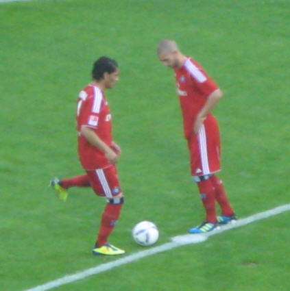 Und jetzt rollt der Ball endlich wieder! Der erste Pass der neuen Saison zwischen Petric und Guerrero! |