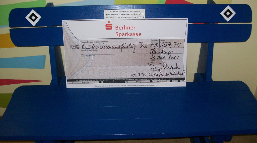 Schnell wurde auch über den Verwendungszweck entschieden, und einstimmig sollte das Geld der Kinderkrebsstation im UK Eppendorf zur Verfügung gestellt werden. | |