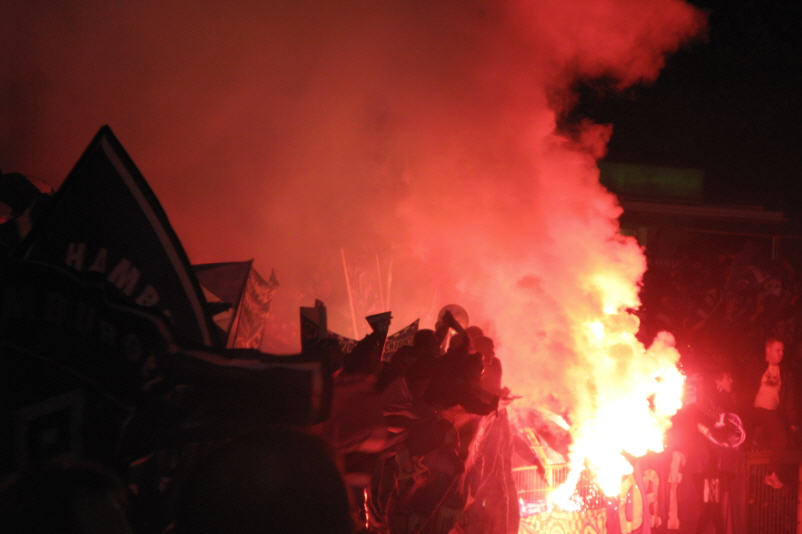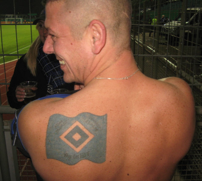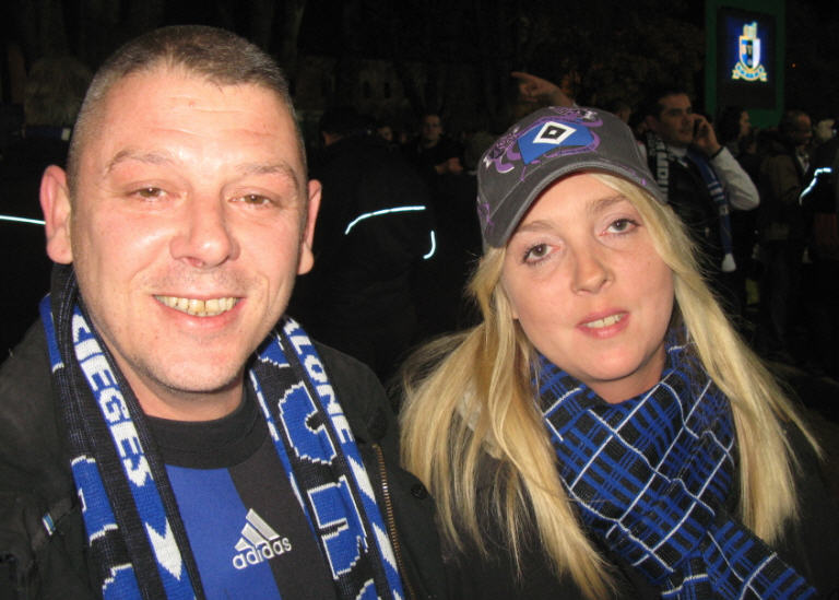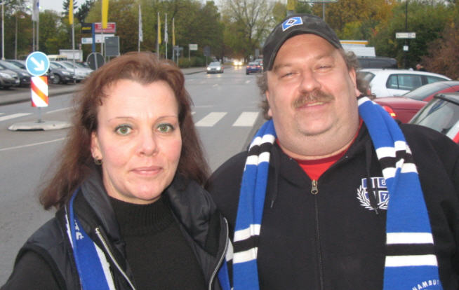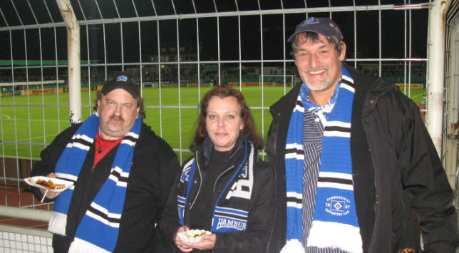 ...plötzlich stand Sascha nebst besserer Hälfte "Hase" Tanja hinter mir. Sascha hat es ja auch nicht weit, denn er wohnt in Aachen und besucht regelmäßig alle Auswärtsspiele des glorreichen HSV im Westen. | |