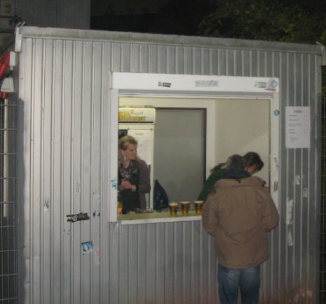Der Becher "Eifelchampagner", wie Dirk das Bitburger aus der Flasche umschrieb, kostete auch nur 2,- €. An angenehmer Preis, zumal solche modernen Unarten wie "Giroventkarte" hier in der fußballerischen Provinz ganz ganz tief im Westen der Republik zum Glück auch unbekannt sind. | |