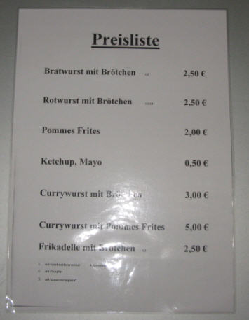 Die kulinarischen Genusse waren nicht nur im Angebot begrenzt, das Preis-Leistungsverhältnis war für 5,-€ für eine Currywurst mit Pommes (viel zu hart) auch etwas neben der Spur. Trotzdem Currywurst und dazugehörige Tunke waren lecker! | |