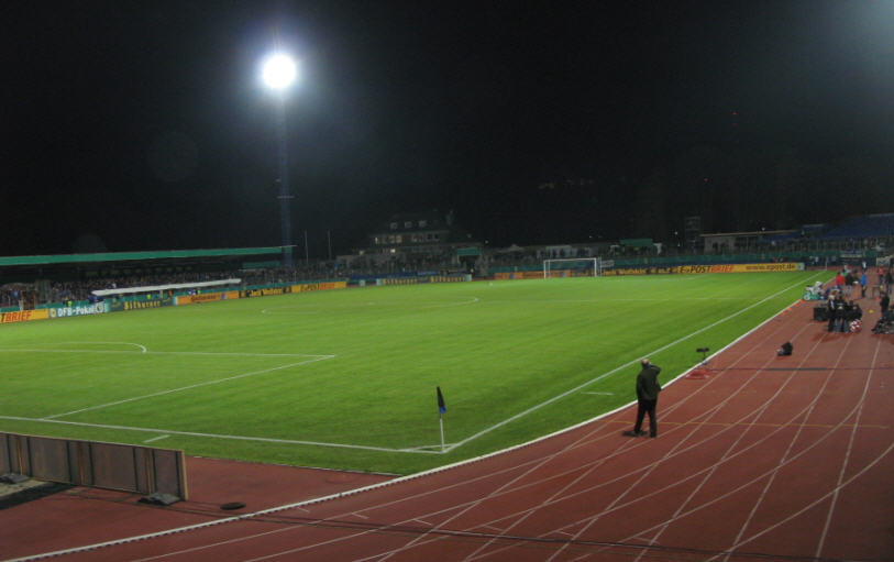 Das Moselstadion liegt mitten in der Stadt und macht - wie kann man es am besten umschreiben - der ältesten Stadt Deutschlands alle Ehre. Es macht auch einen recht heruntergekommenen Eindruck und hat bestimmt schon bessere Jahre gesehen, die allerdings schon etwas weiter zurück liegen... | |