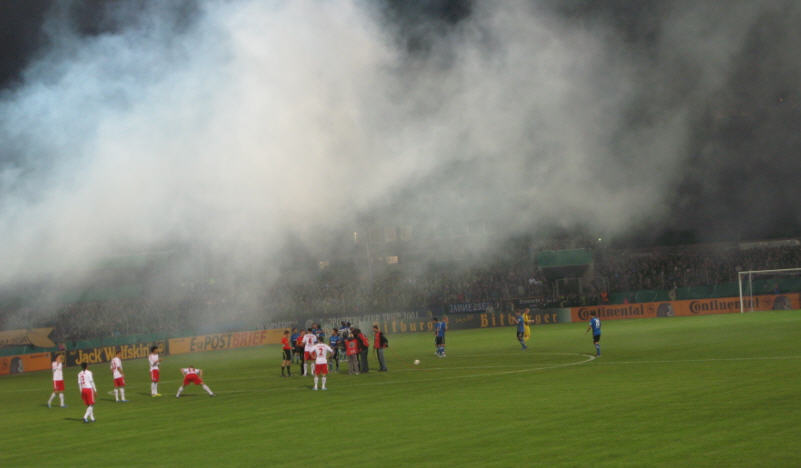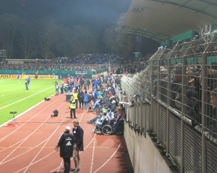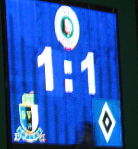 Die Stehplatzkarte kostete 11 ,-.€ und es gab für die Fans (und die Mannschaften) noch einmal 30 Minuten Nachschlag: Verlängerung! | |