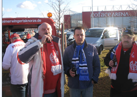 Die letzte damit die bisher 51.Auswärtsfahrt unseres Fanclubs führte zur neuen Coface Arena in Mainz. Mit insgesamt 7 Waterkantlern (und einem neuen Mitglied in spé - Dirk, du weißt wen ich damit meine...). | |