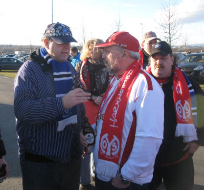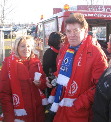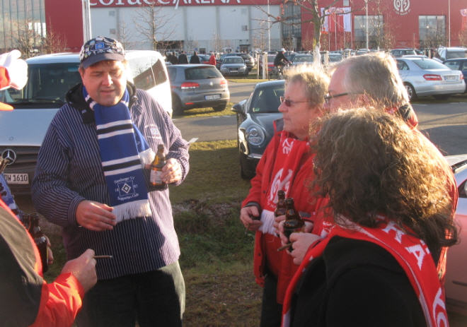 Während unseres Zusammentreffens am "Bussje " wurden abwechselnd HSV- und Mainz 05 - Lieder gespielt. | |