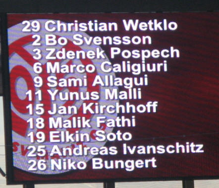 Trainer Fink und Tuchel folgende Mannschaften: Wie immer in Mainz durften die Gästefans - ohne Störungen der Anhänger der Mainzer Mannschaft - die eigene Elf mit ansagen. Respekt! So etwas findet man in anderen Stadien nicht und vielleicht sollte man sich das mal als gutes Beispiel nehmen... |