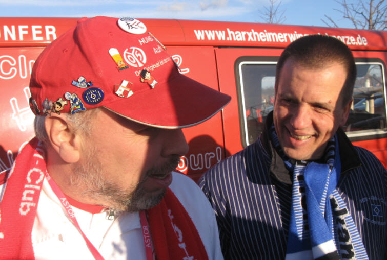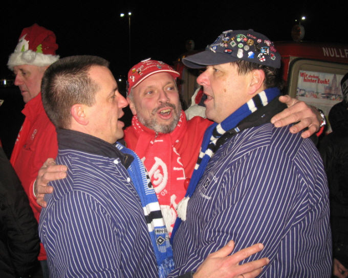 Unter dem gemeinsamen Absingen von "Hamburg, meine Fussballperle" ging das Freundschaftstreffen am "Bussje" dann dem Ende zu. | |