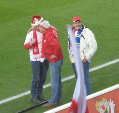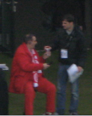 Auch Klaus Hafner, seines Zeichens Stadionsprecher bei Mainz 05, lässt sich ein Getränk in der Halbzeit reichen. leider bekam er mit den Hamburger Fans gleich nach Wideranpfiff doch einiges zu tun. |