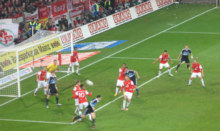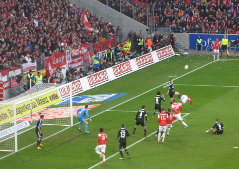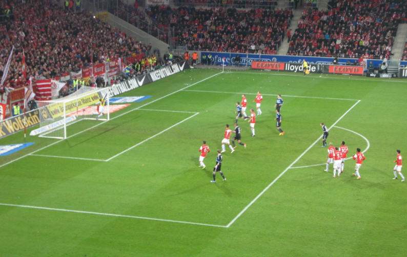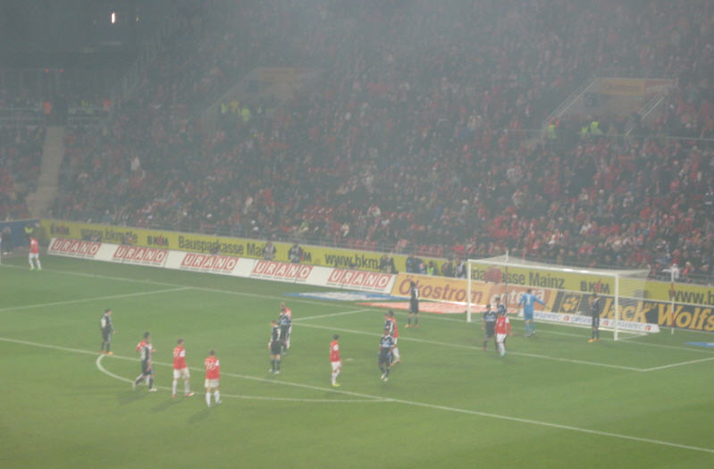 Noch ein kleines Wort zur neuen Coface Arena sei gestattet. Ein wirklich schöne Fussballarena auf dem neusten Stand der Technik habt ihr Mainzer euch da gegönnt. Statt der 18.000 Fans am alten Bruchwegstadion können jetzt 34.000 Fans die Heimspiele der Mainzer begleiten. Die Stimmung am Bruchweg fand ich persönlich besser. Ihr müsst den 16.000 Neufans jetzt die alte Stimmung noch beibringen... | |
