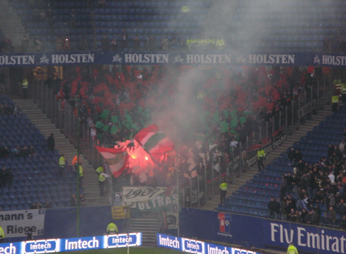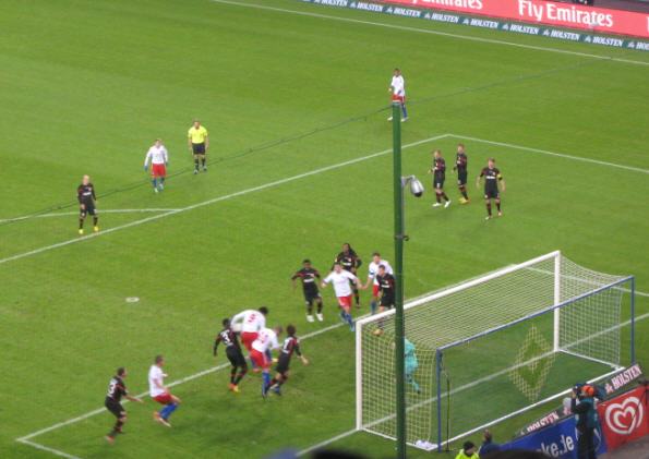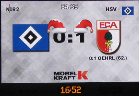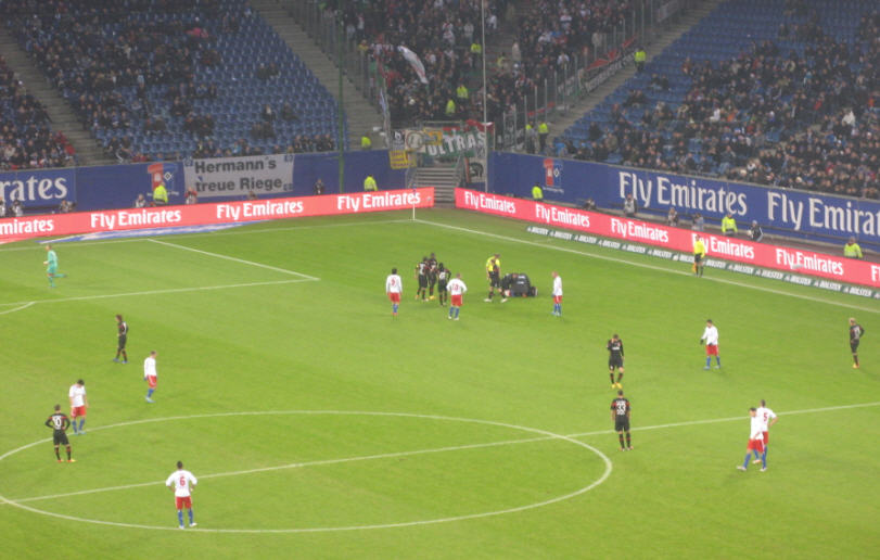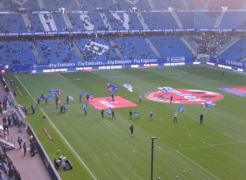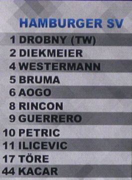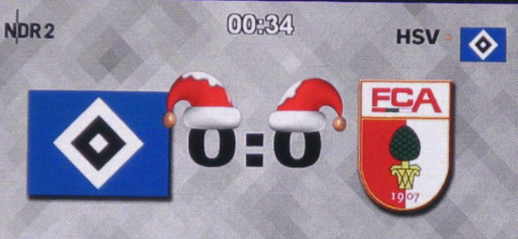 In Halbzeit 1 zeigte die eingeblendete Statistik ein ausgeglichenes Bild. Ballbesitz 50:50 und Zweikämpfe knapp für den HSV 51:49. Von der Tribüne aus blieben natürlich die letzten 3 Minuten im Gedächtnis hängen: mit gefühlten 4 100%tigen Einschussmöglichkeiten für den HSV! | |
