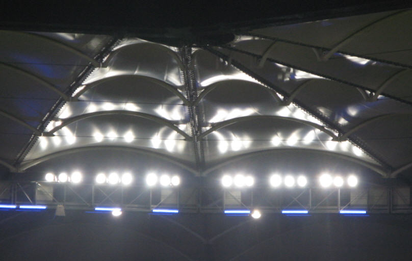Kein landendes UFO sondern ein Blick in die Ecke des Stadiondaches. |