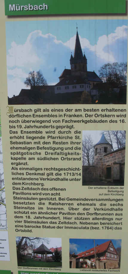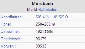 Malerisches Mürsbach – die Perle Oberfrankens! Mürsbach ist ein Ortsteil des Marktes Rattelsdorf im Landkreis Bamberg, Oberfranken mit etwa 500 Einwohnern. Das historisch zum Fürstbistum Würzburg (Unterfranken) gehörende Gemeinwesen gilt als eines der bedeutendsten historischen Ensembles dörflicher Fachwerkarchitektur Frankens.
