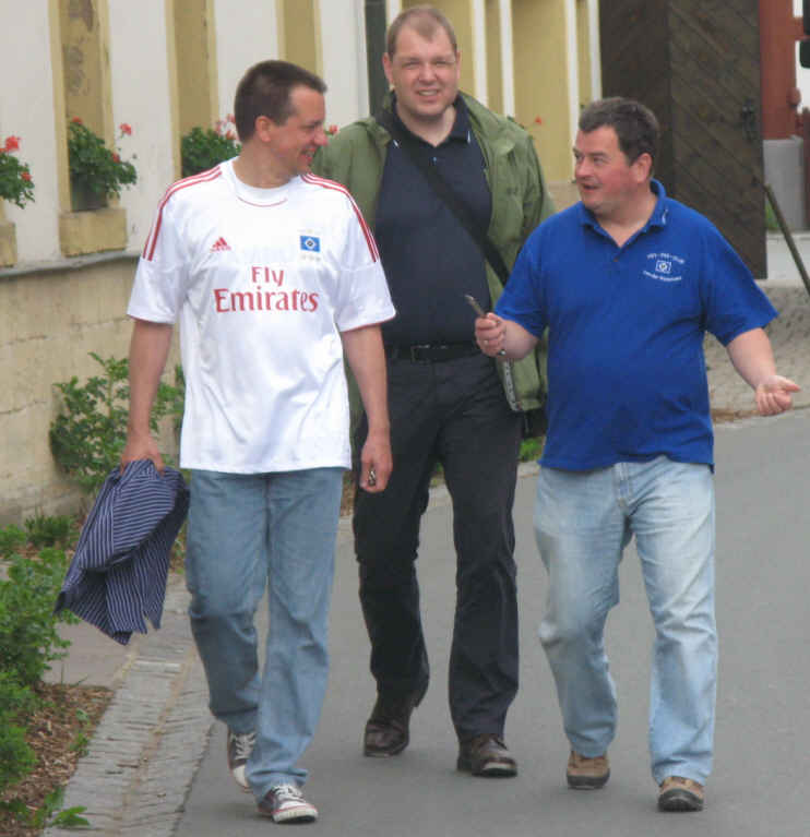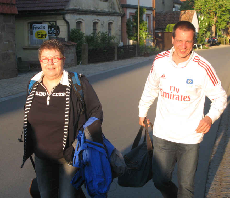 Am Freitag kurz nach 13 Uhr starteten wir (7 Personen) aus Hamburg. Die Pförtner waren so nett den Notausgang zu öffnen, damit sich einige uns den Umweg (ca. 10 Meter) sparen konnten. Bei richtig gutem Wetter verlief die Fahrt nach Mürsbach reibungslos. Aller Baustellen zum trotz und der 2 Bewegungs-/ und Verpflegungspausen kamen wir gegen 18.45 Uhr an und bezogen zum Großteil ein gerade vor gut einem Monat kernsaniertes Haus. Jeder hatte seinen eigenen Schlafraum und das für gerade mal 18 € plus 7 %. |