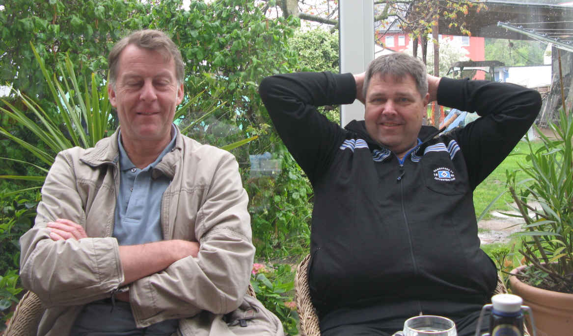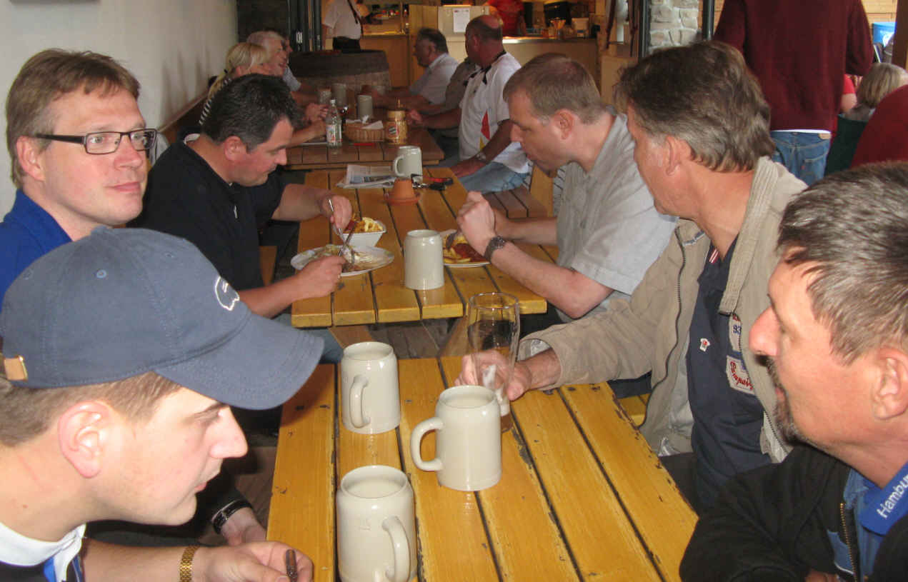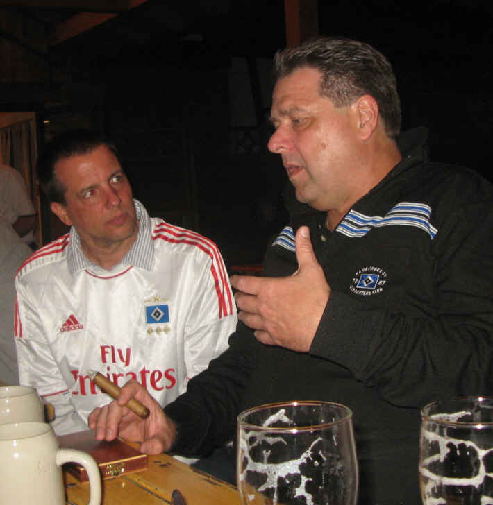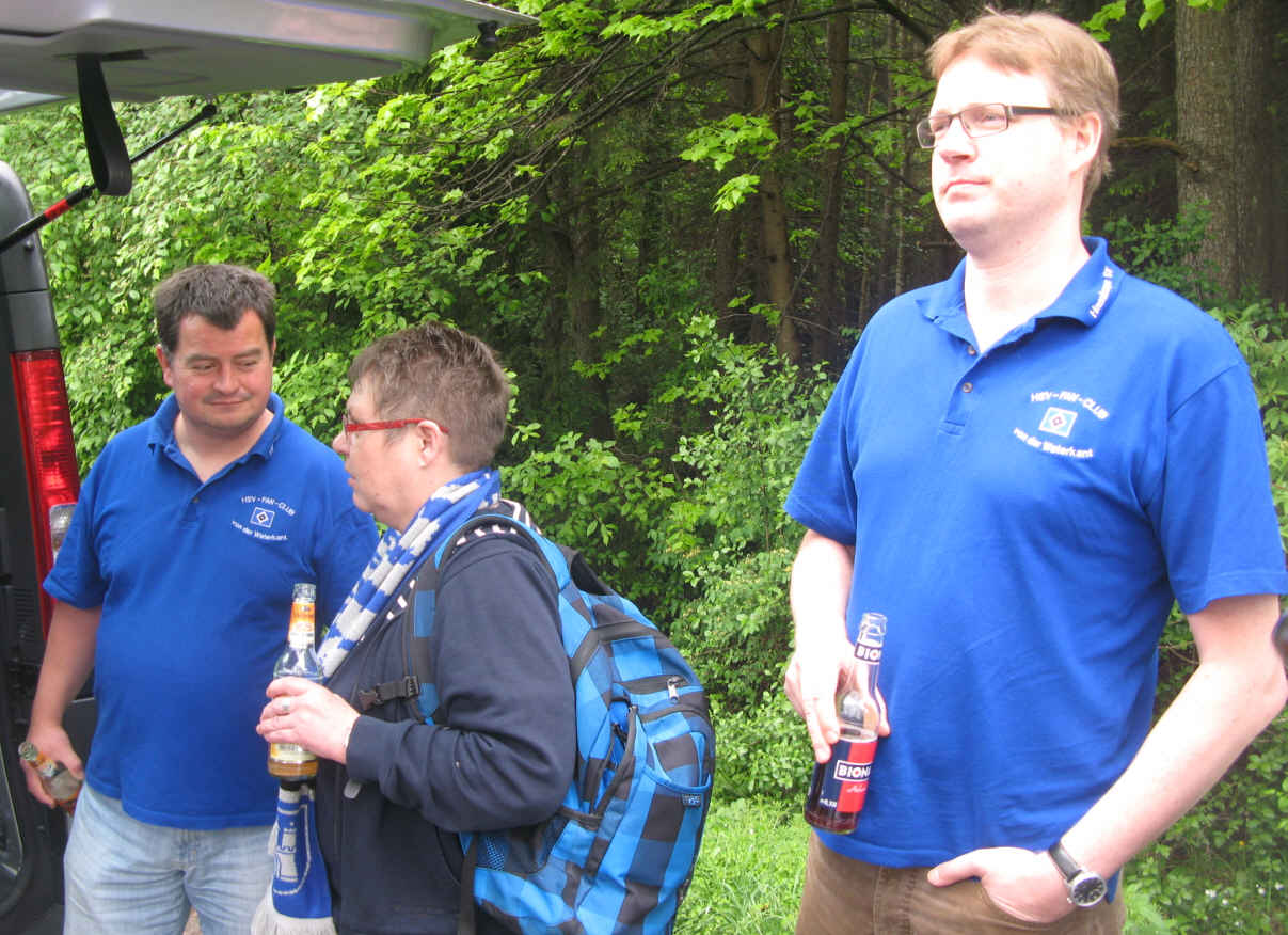 Nach dem „Einzug“ ließen wir uns so gleich im Biergarten der Sonne nieder. Hier trafen wir uns mit Regina, Rainer & Michael. Selbst „Weinbrandt-Claudia“ ließ es sich nicht nehmen uns mit ihrer Anwesenheit zu beehren. Leckeres Bier und ebenso schmackhafte Speisen machen den Abend zu einem gemütlichen Ausklang eines gelungenen Tages. Es gab viele Diskussionen um unseren HSV und weiterer Themen. Es soll auch etwas emotional (durch drastischere Gesten untermalt) geworden sein. Vielen Dank an Birger, da er uns die Strecke gewohnt sicher und ruhig ans Ziel brachte.