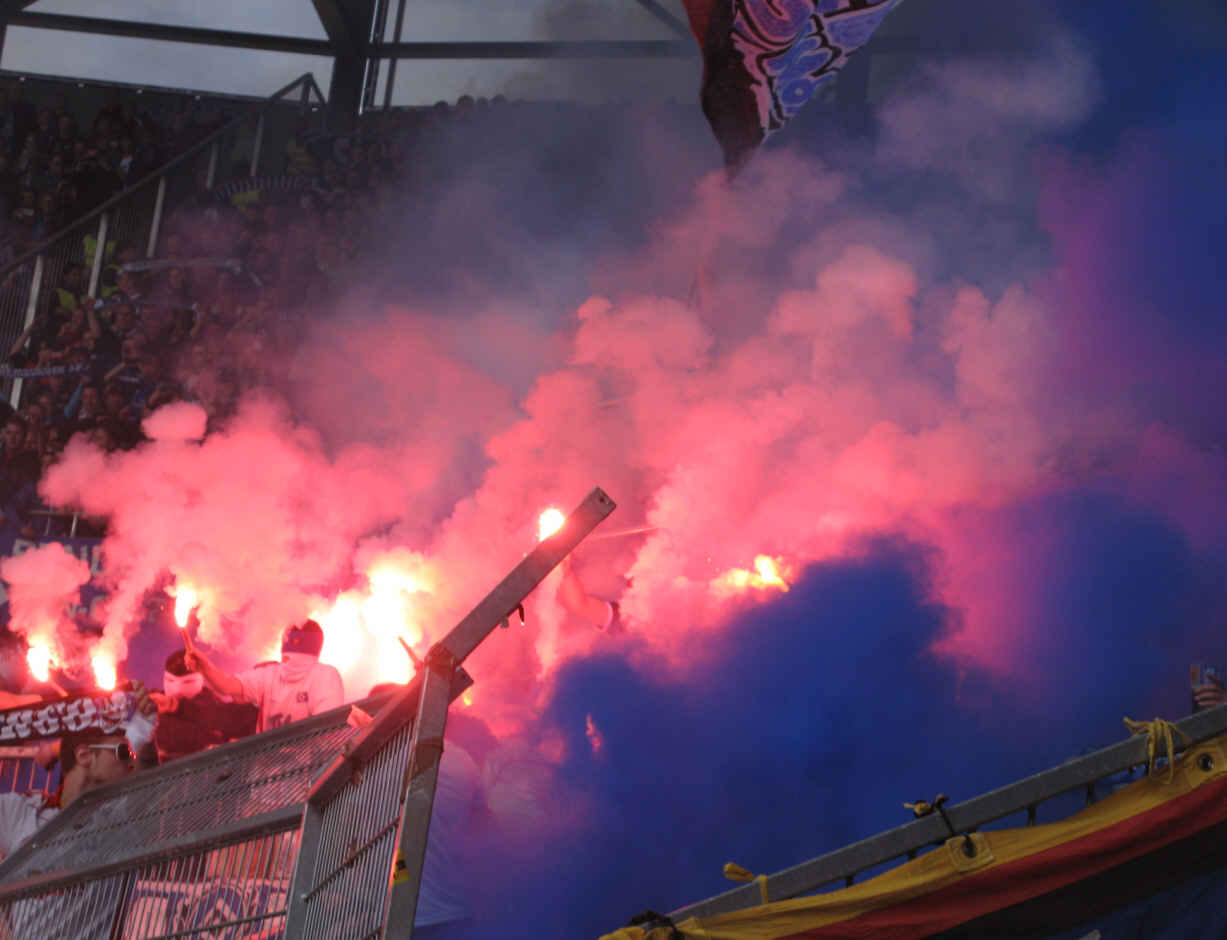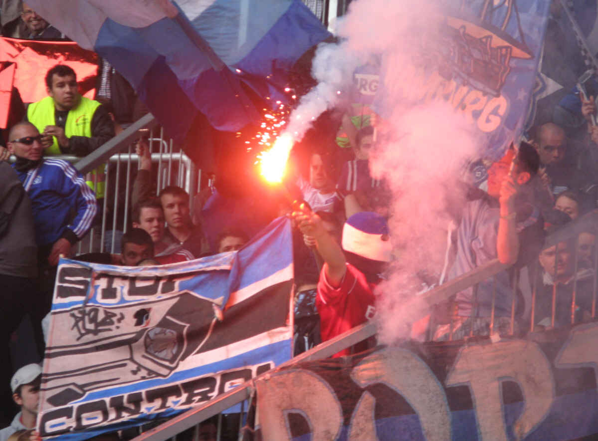 Mit Auflauf der Spieler wurde Pyrotechnik (Bengalos & blaue Rauchbomben) gezündet. Siehe „Kugelschreiberabnahme“!!! In der Reihe vor uns wurde geschlafen und in der Reihe hinter uns sehr ausgelassen gefeiert (was eigentlich?).