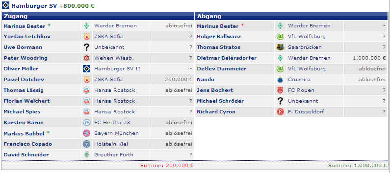Hier noch eine Auswahl einzelner Transfers: | ||||||||||||||||||||||||||||||||||||||||||||||||||||||||||||||||||||||||||||||||||||||||||||||||||||||||||||||||||||||||