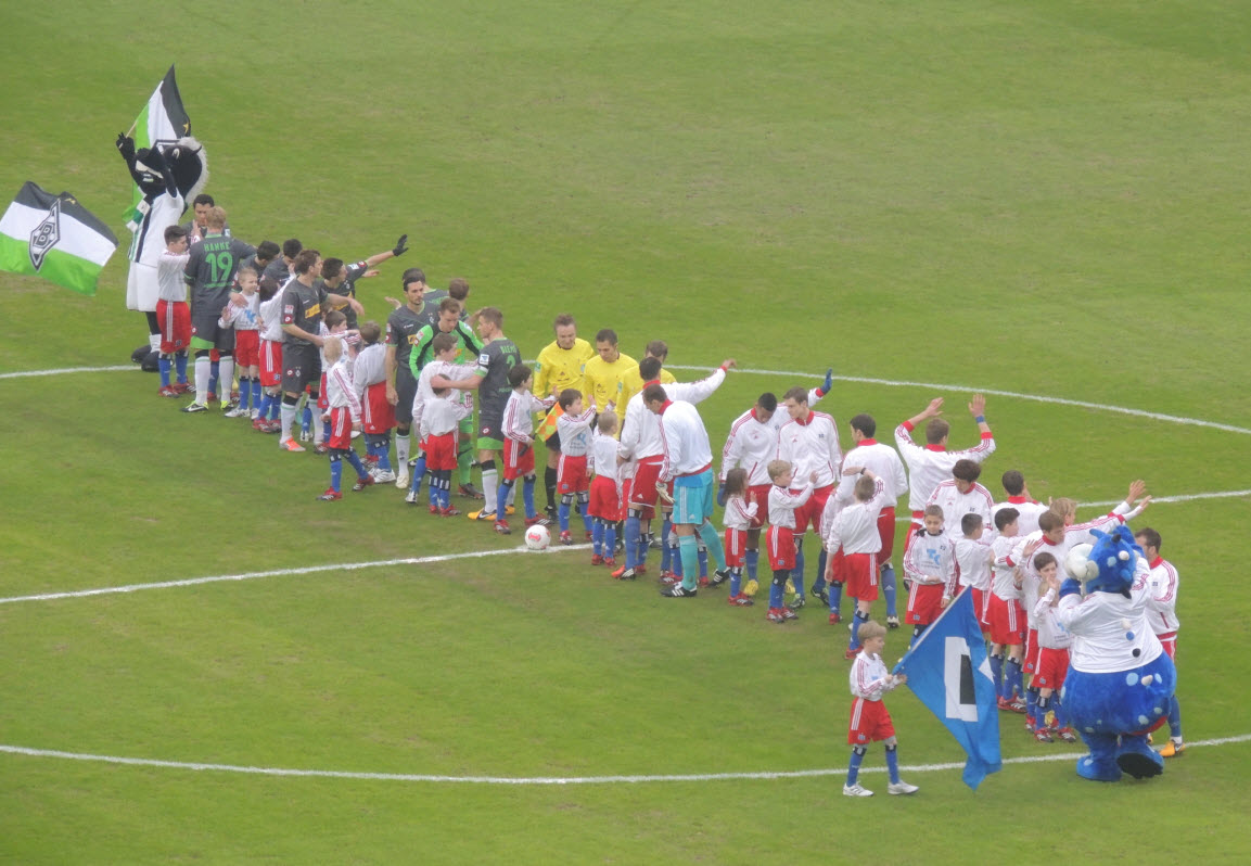 Das Fohlen der Gladbacher hatte nur vor dem Spiel etwas zu lachen. |
