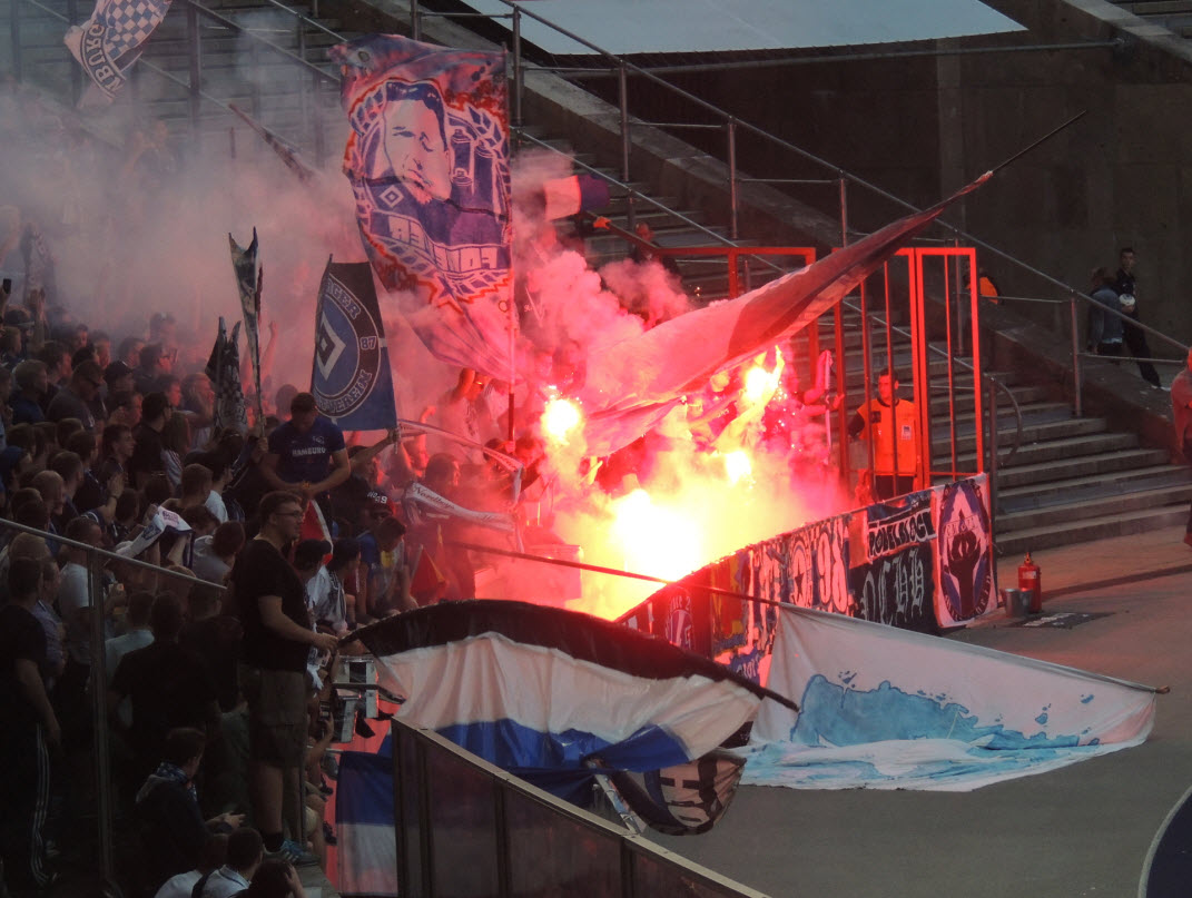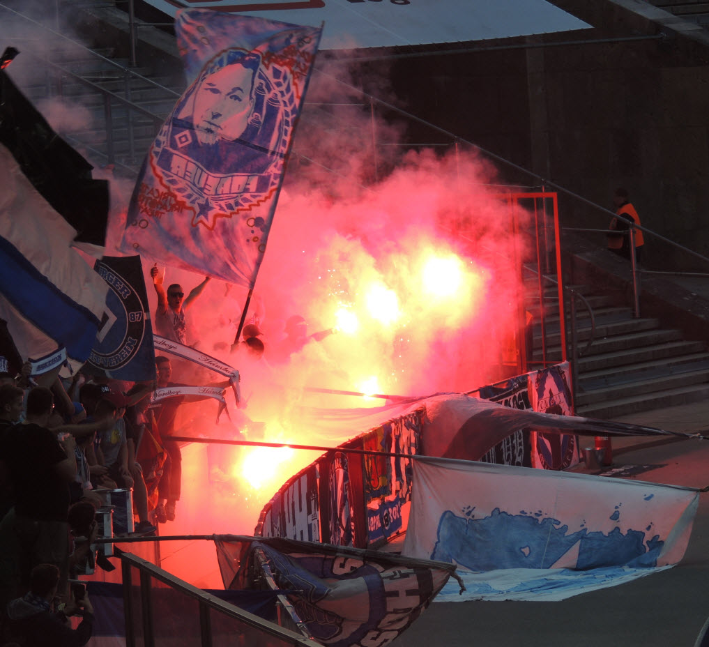 Beginn der 2. Halbzeit zündeten die Ultras mal wieder Bengalos und