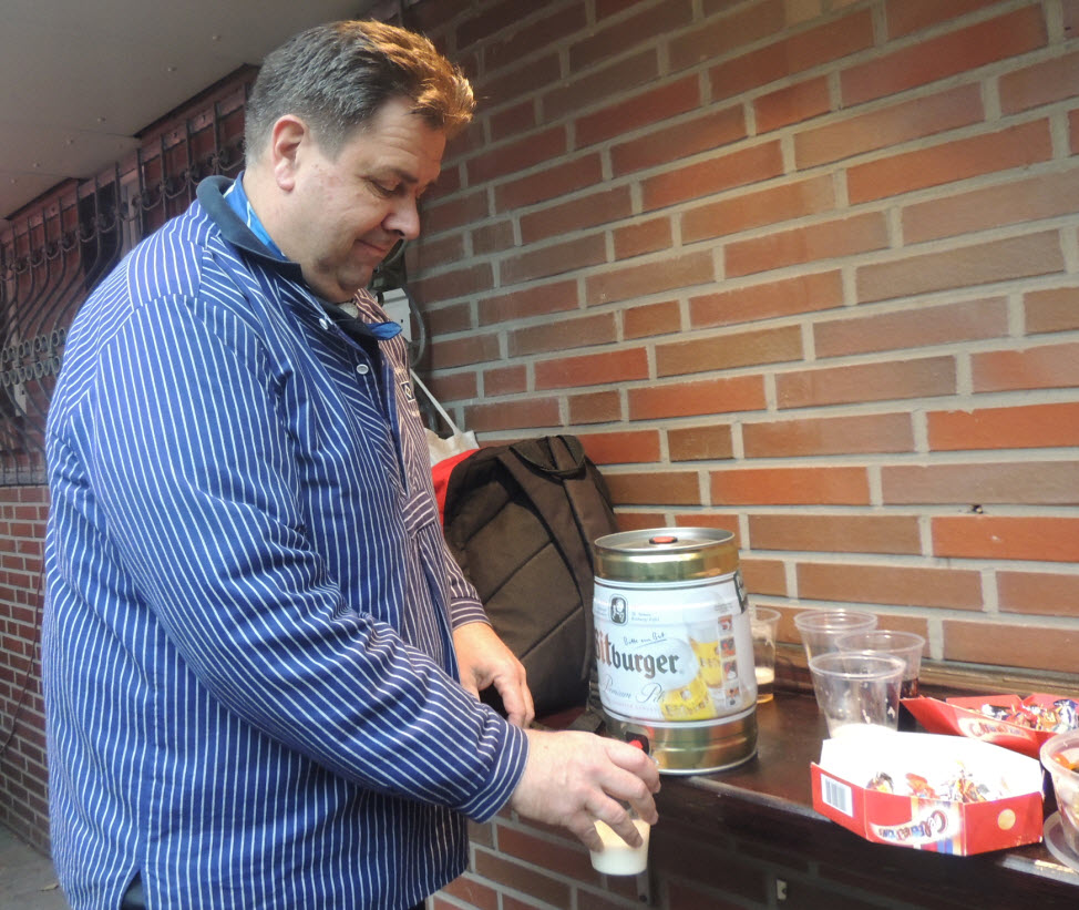 5-Literfässer Bier, quasi mein Geburtstagsbier, aufgebaut. So dass das Bier