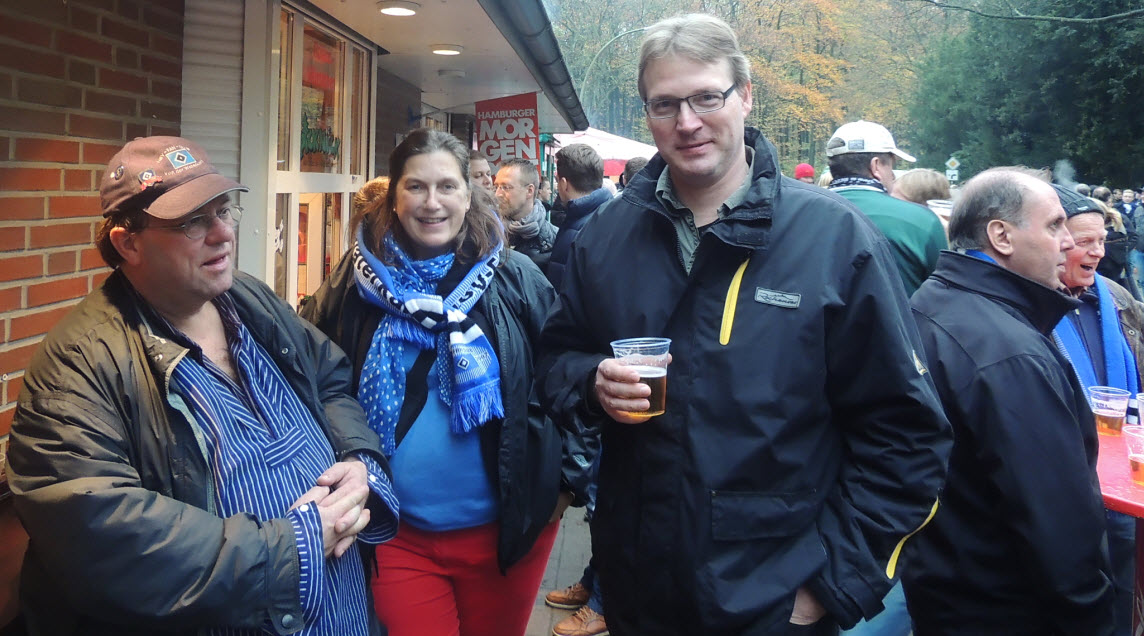 Bis zum Stadiongang erschienen noch zahlreiche Fabn-Clubmitglieder und Bekannte, so dass wieder umfangreiche Diskussionen, Analysen etc zum HSV und zum Fußball allgemein geführt wurden. Ein paar Gladbach-Fans, mit denen wir ins Gespräch kamen, berichteten uns das auch ihr Trainer Lucien Favre heute mit mir zusammen Geburtstag hat. Da dieser wie ich auch sich 3 Punkte zum Geburtstag wünschte, sieht man mal wieder das nicht alle Wünsche in Erfüllung gehen können.... |