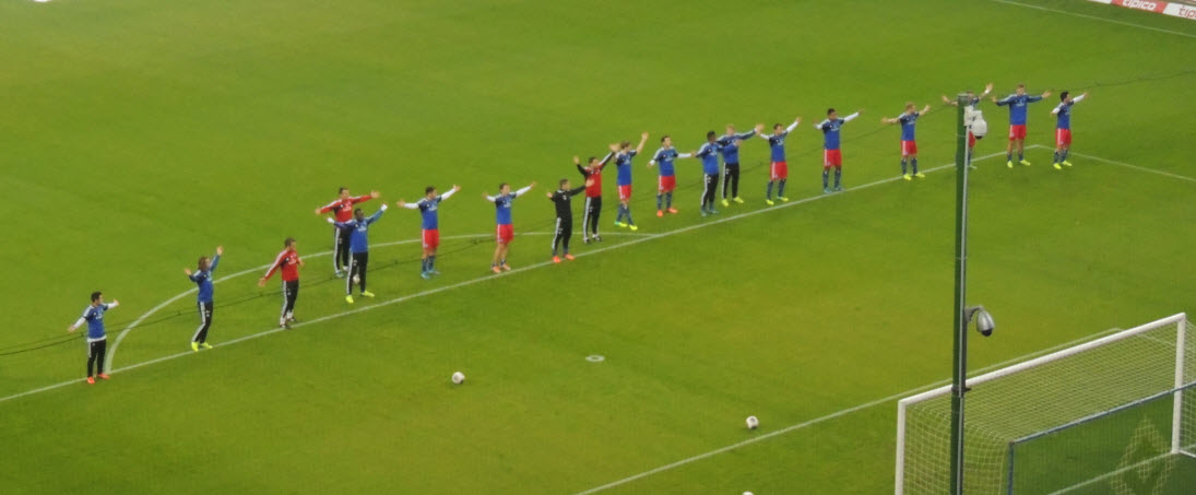 Pünktlich zum Anpfiff waren wir dann alle im Stadion und haben uns auf ein tolles Spiel gefreut. Wir wurde nicht enttäuscht. Es wurde meines Erachtens ein wirklich gutes Bundesligaspiel auf hohen Niveau mit hoher Intensität auf Augenhöhe. Wobei unser HSV auch ein Chancenplus hatte. Leider stimmt das Ergebnis nicht, weil wir durch zwei individuelle Fehler dem Gegner die beiden Tore als Geburtstagsgruß für deren Trainer geschenkt haben. Solche Geschenke hätte ich mir von den Gladbachern für meinen Geburtstag auch gewünscht.... |